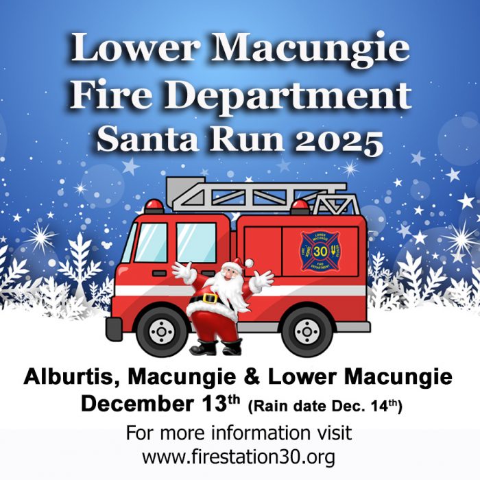 Santa will be making his way around Alburtis, Lower Macungie and Macungie Borough with a little help from the fire department on December 13th .(Rain date Dec.14th) Routes and estimated times will be listed below in alphabetical order by neighborhood or municipality once they are available. Please check back or follow on Facebook, Twitter, and … Continue reading 2025 Santa Run – December 13th